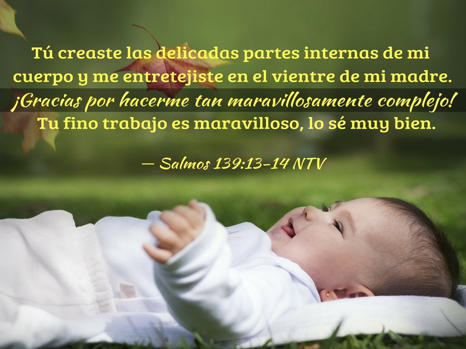 13Porque tú formaste mis entrañas; Tú me hiciste en el vientre de mi madre. 14Te alabaré; porque formidables, maravillosas son tus obras; Estoy maravillado, Y mi alma lo sabe muy bien.