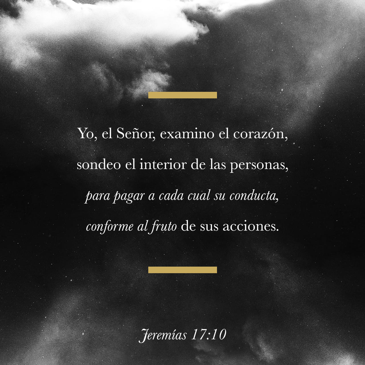 Yo, el Señor, sondeo el corazón y examino los pensamientos, para darle a cada uno según sus acciones y según el fruto de sus obras.