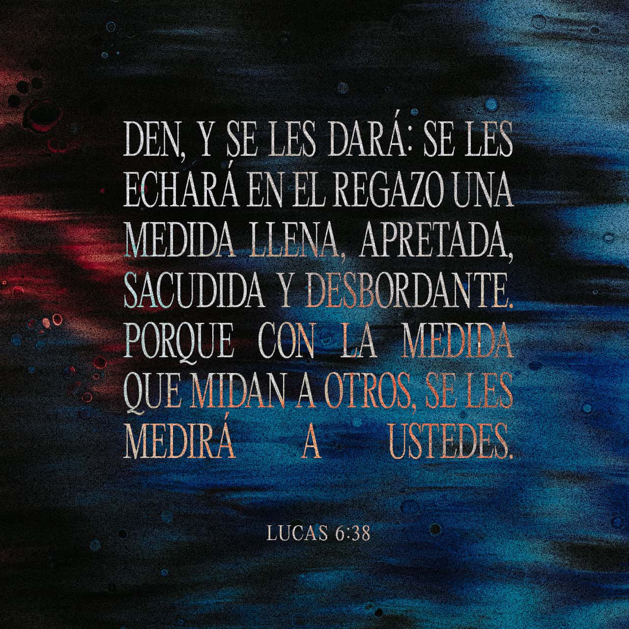 Dad, y se os dará; medida buena, apretada, remecida y rebosando darán en vuestro regazo; porque con la misma medida con que medís, os volverán a medir.